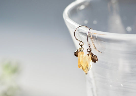 シトリンxスモーキークォーツ ピアス