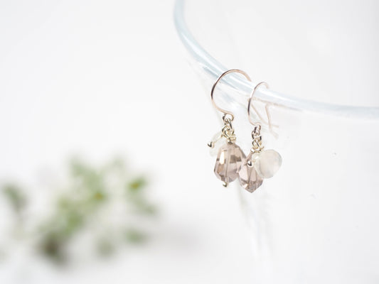 スモーキークォーツxムーンストーン ピアス