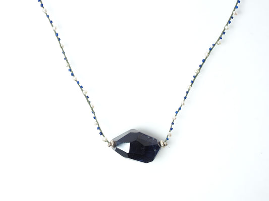 -Iolite- 'pearl・Lapis lazuli・silver' braid choker