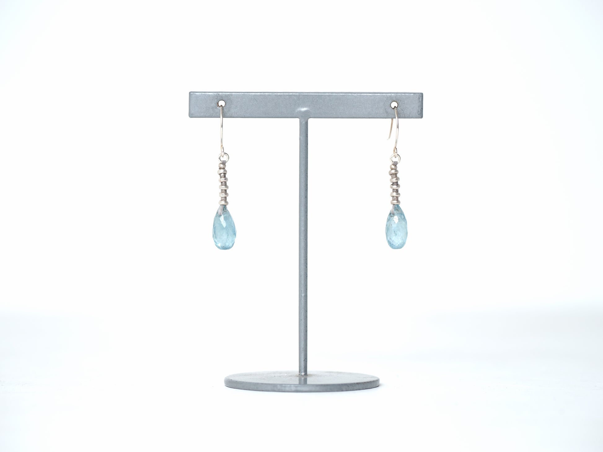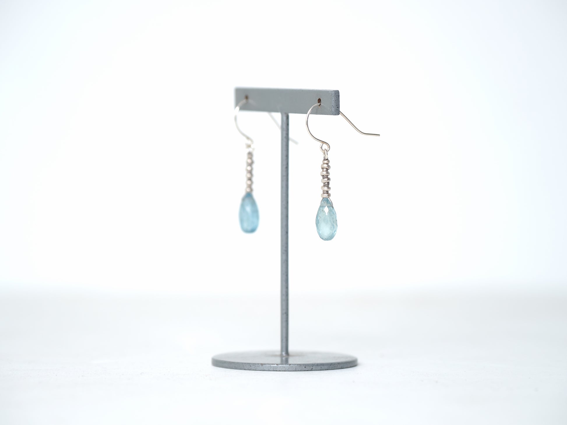 2種類のシルバービーズを組み合わせ、程良く吊り下がるショートピアスに仕立てました。