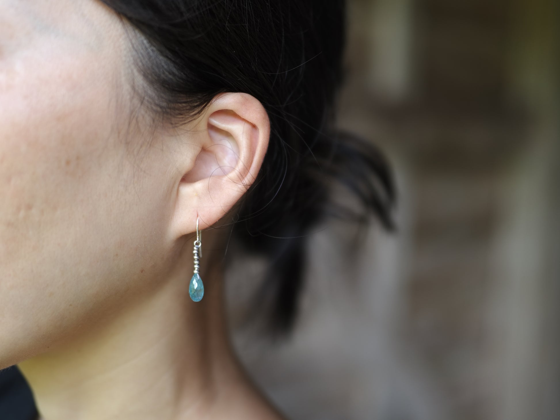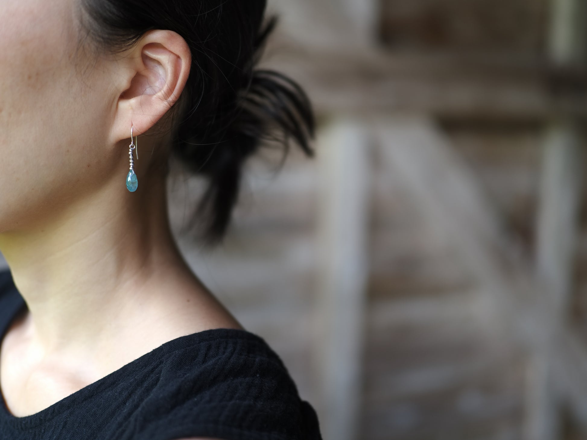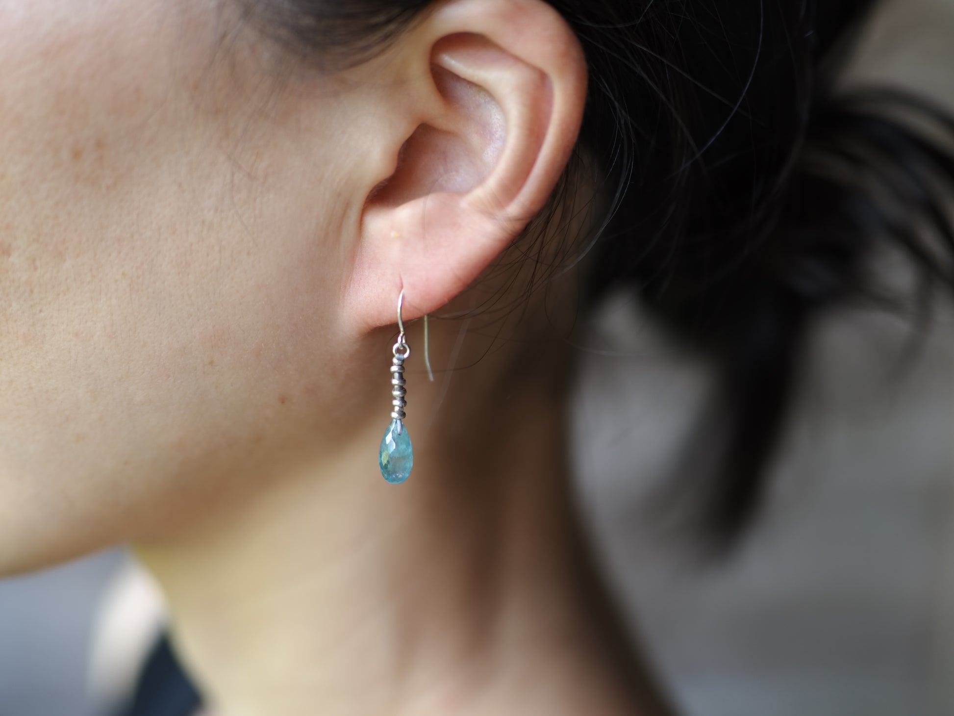神秘的なスカイブルーの輝きが耳もとを鮮やかに照らします。