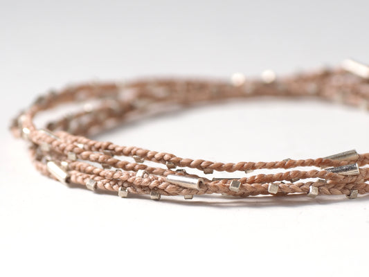 silver braided bracelet beige