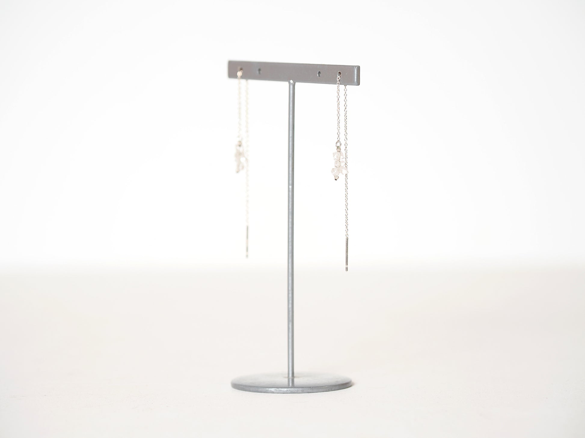 繊細なシルバーチェーンに繋ぎ、スッキリとした印象のアメリカンピアスに仕立てました。