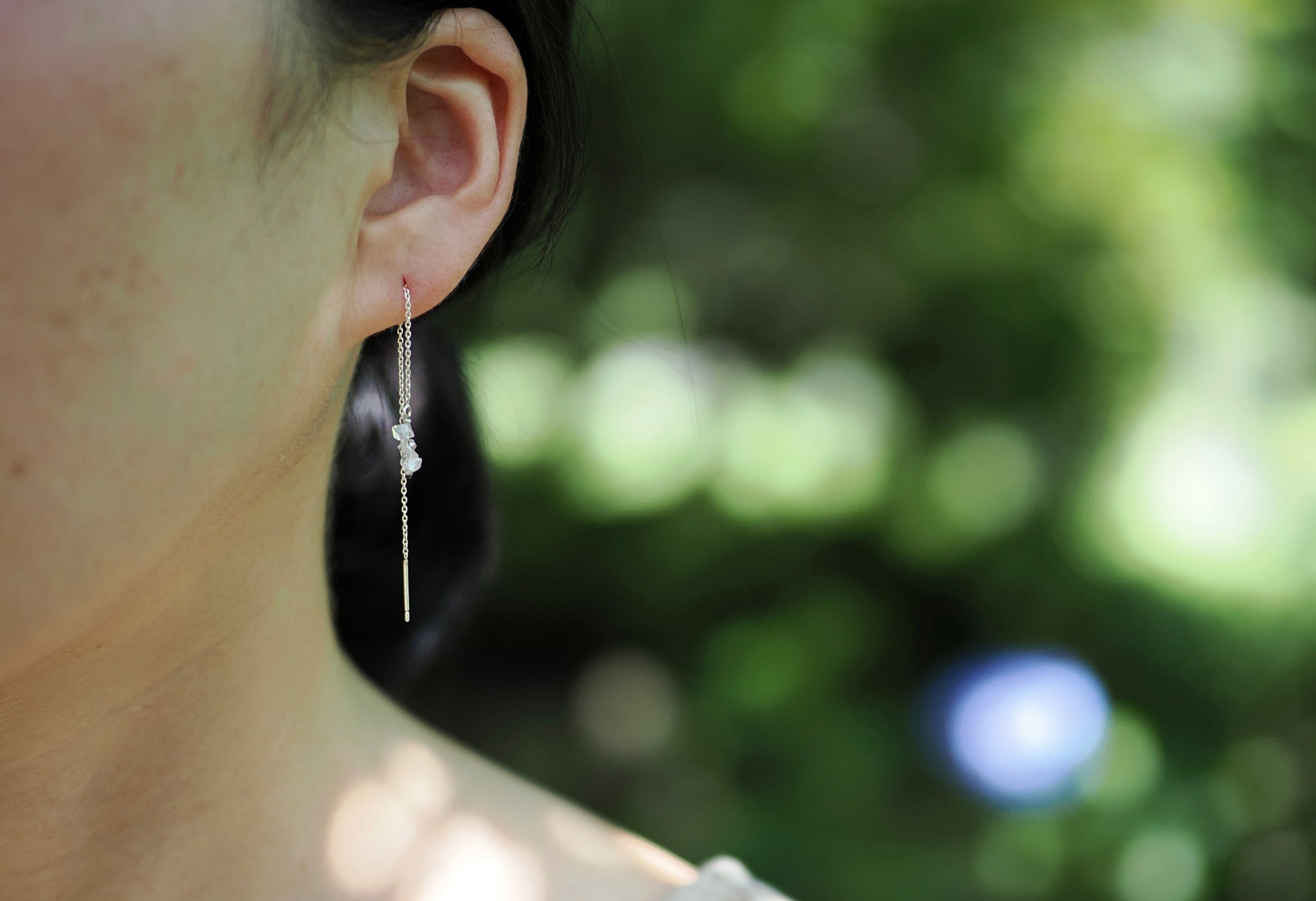 ハーキマーダイヤモンドを連ねたアメリカンピアス