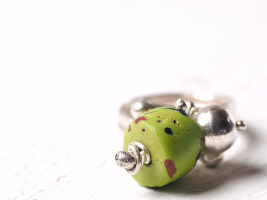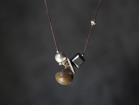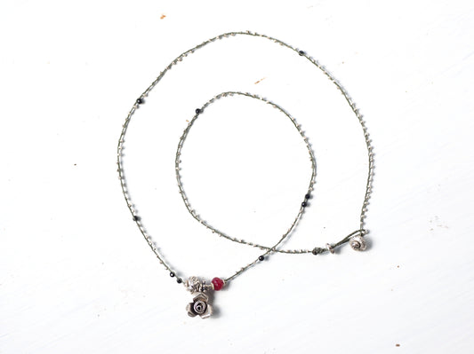 【ローマングラス_ ビルマビーズ 】編み込み ペンダント