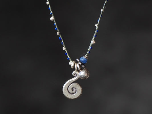 【渦巻きチャーム_サファイア】 編み込み ペンダント