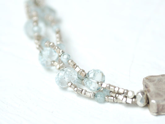 Sold outアクアマリン シルバー"3連"ブレスレット