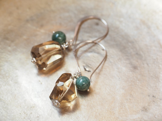 ビアクォーツx翡翠 ピアス "マッシブ"