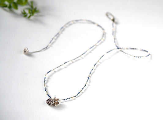 ボタニカルチャーム 編み込み ロングネックレス【ラピスラズリ_パール】