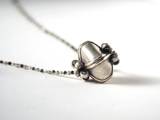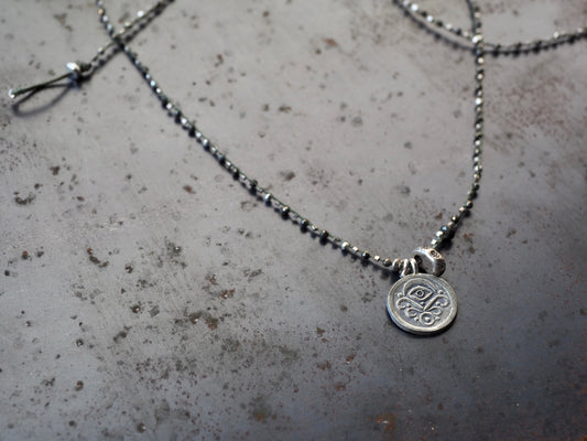 Sold outエスニックコイン 編み込み ロングペンダント【パイライト_シルバー】