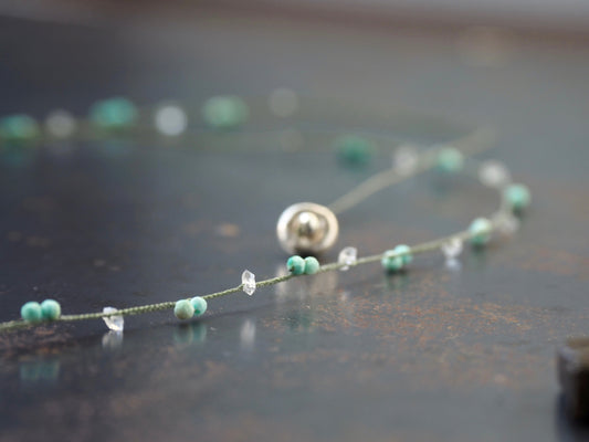 ボタニカルチャーム 編み込み ロングネックレス【クリソコラ_クリスタル】