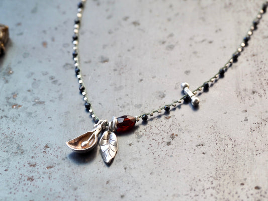 【ボタニカルチャーム_ガーネット】 編み込み ロングペンダント