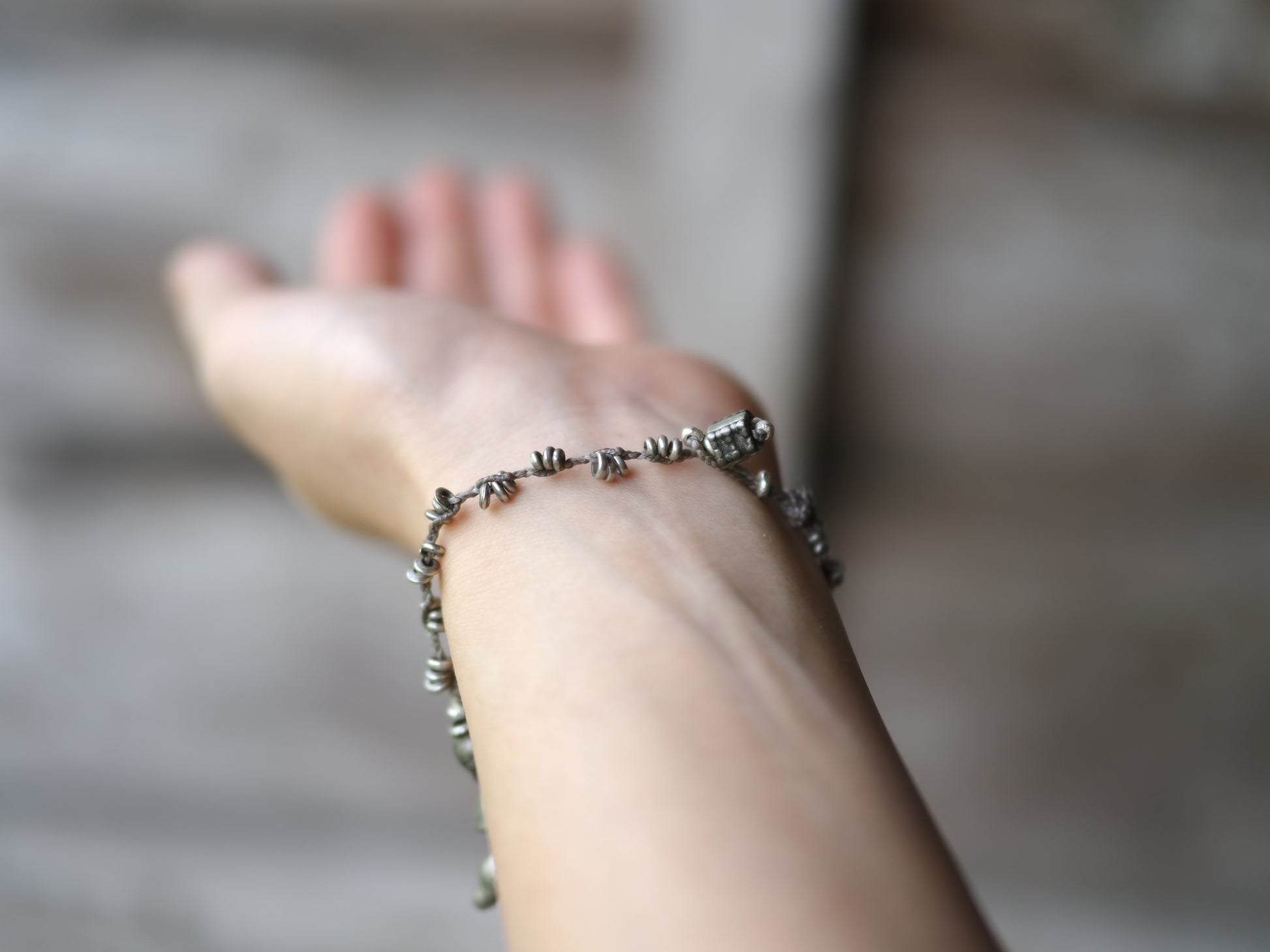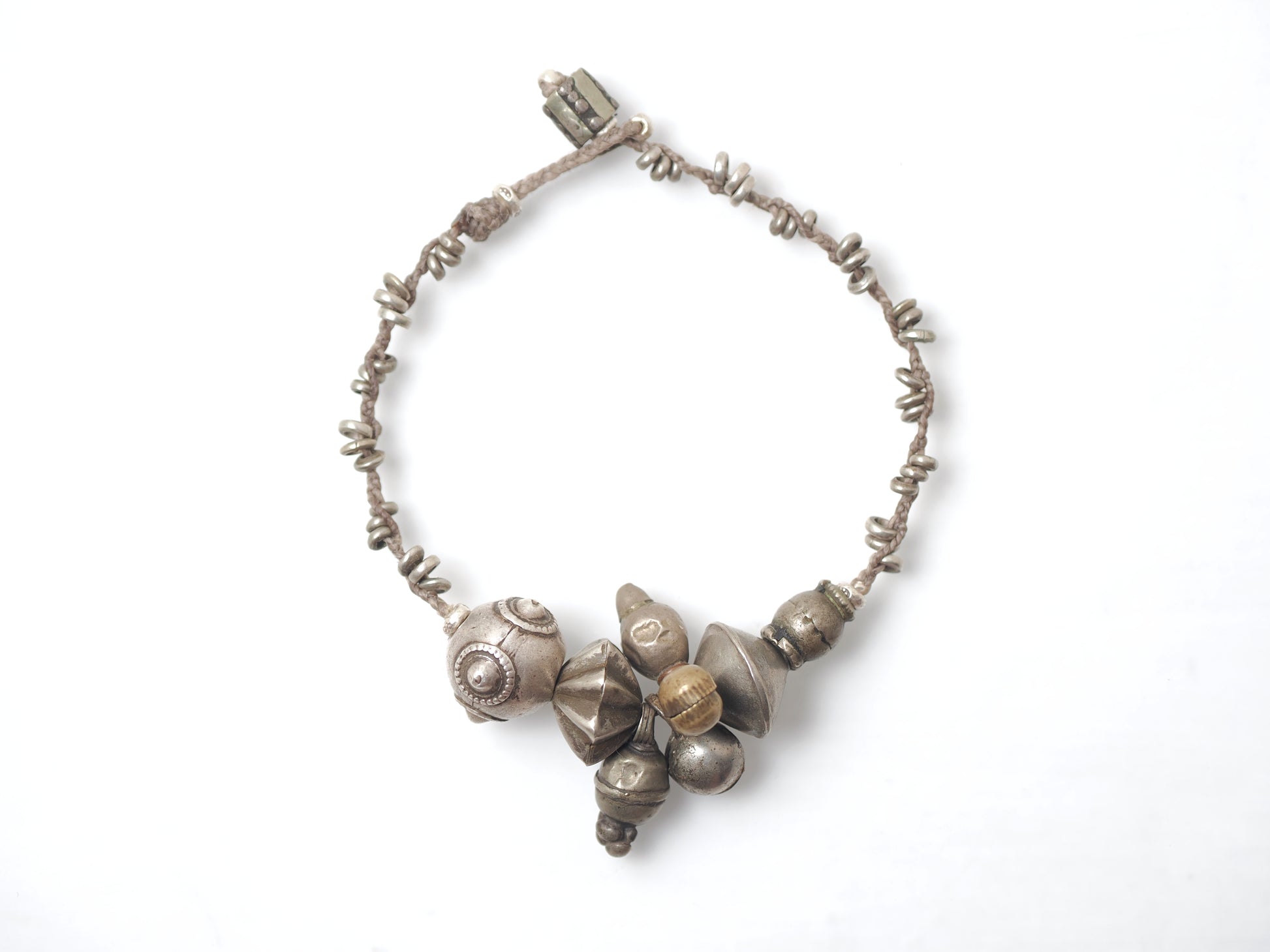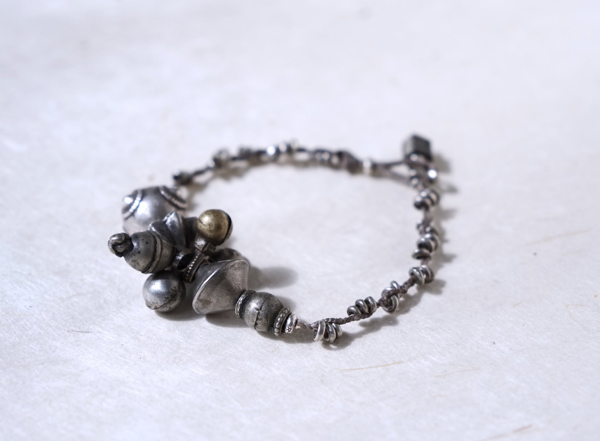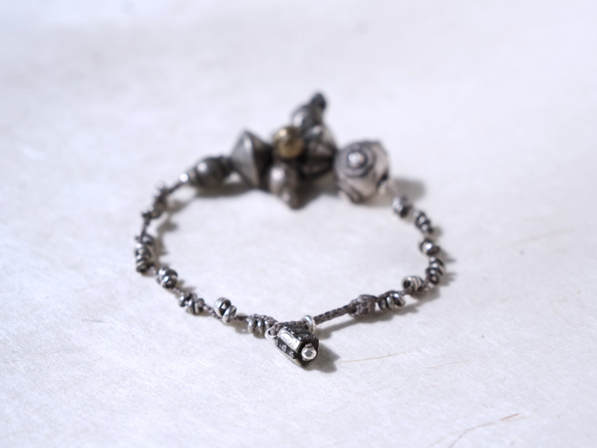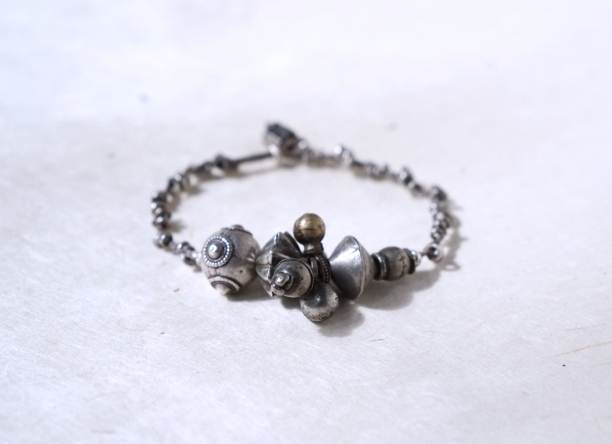 一粒一粒が個性的で深みのあるオールドシルバービーズを組み合わせ、装飾感のあるブレスレットに仕立てました。