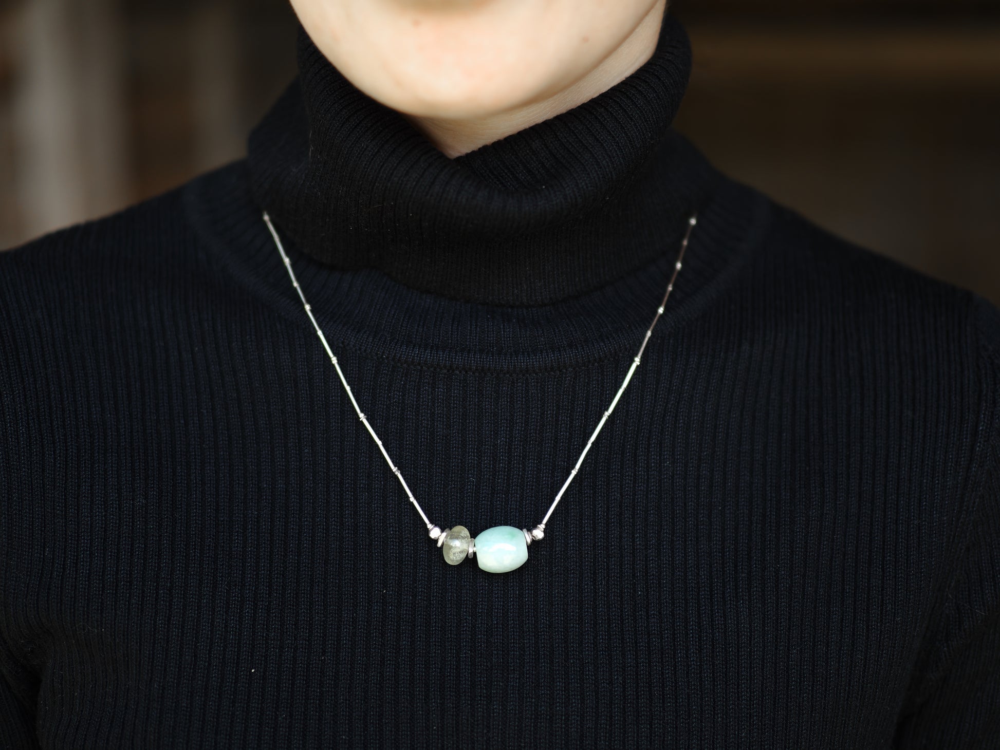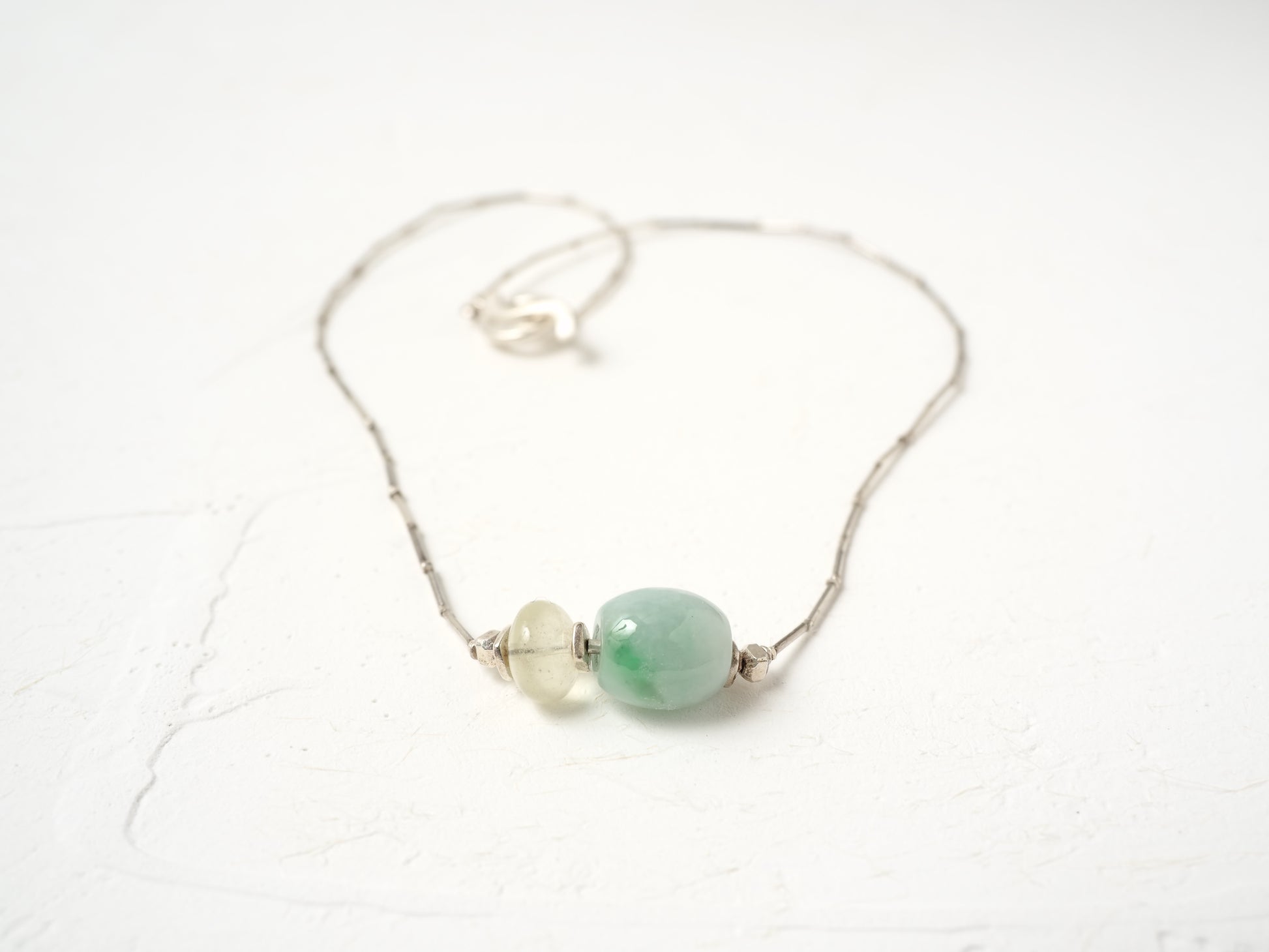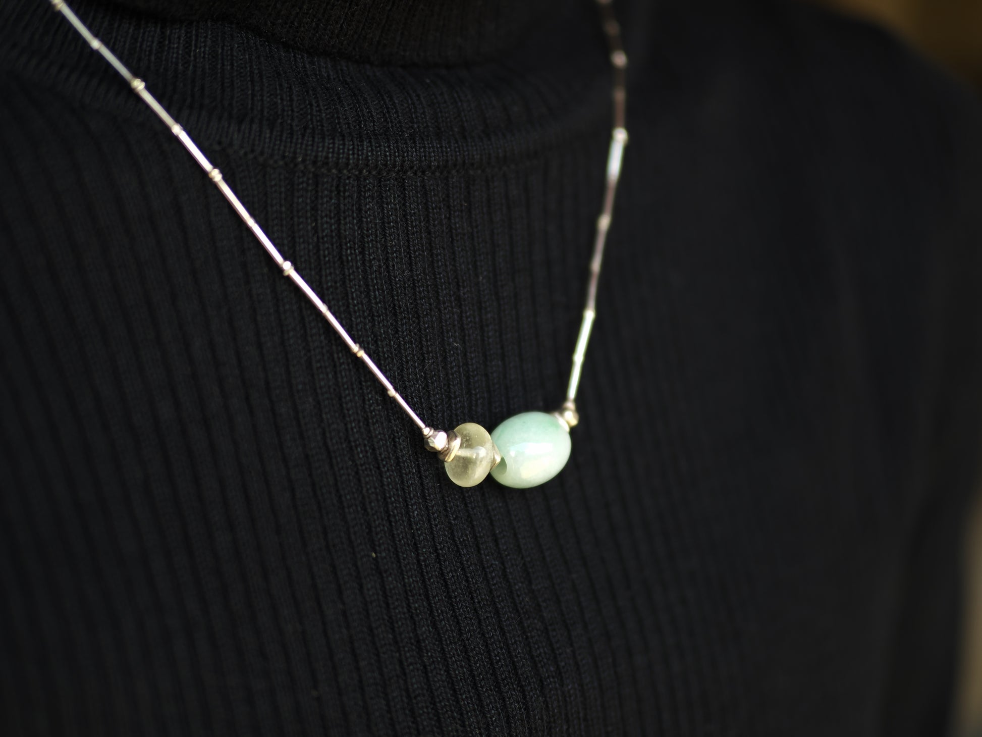 リビアングラスと翡翠を合わせたシルバーネックレス