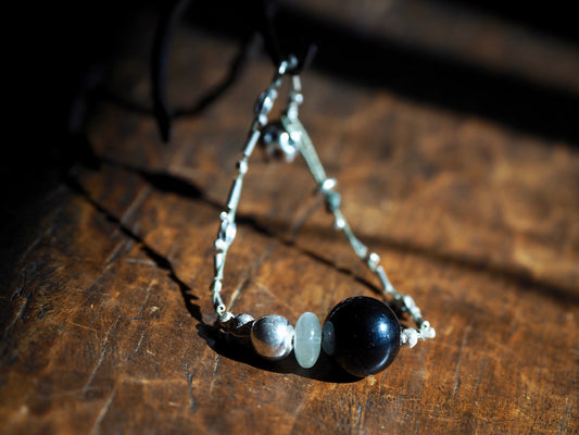 【ムーンストーン_ブラックスピネル】 シルバーブレスレット