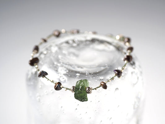 Sold out【モルダバイト_ボルダーオパール】編み込みブレスレット