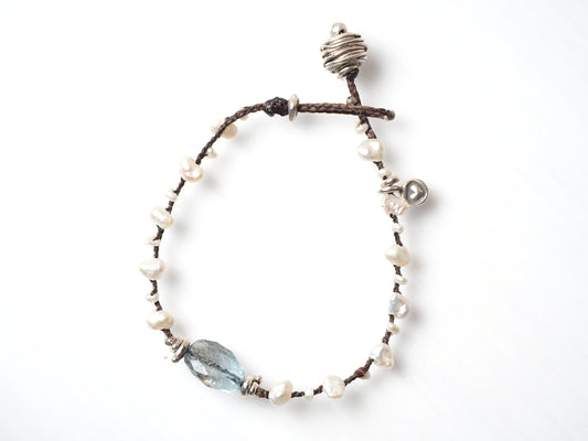 【モスアクアマリン_パール】 編み紐ブレスレット