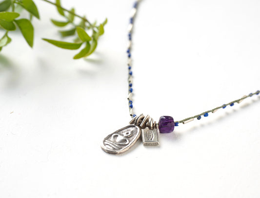【ブッダチャーム_アメジスト】 編み込みペンダント