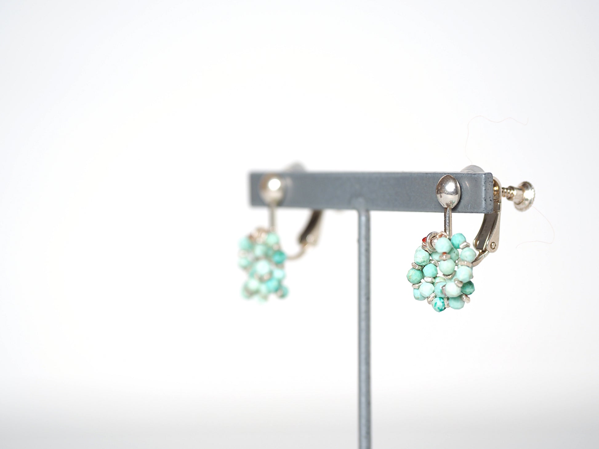爽やかなライトグリーンの石を繋いだピアス・イヤリング