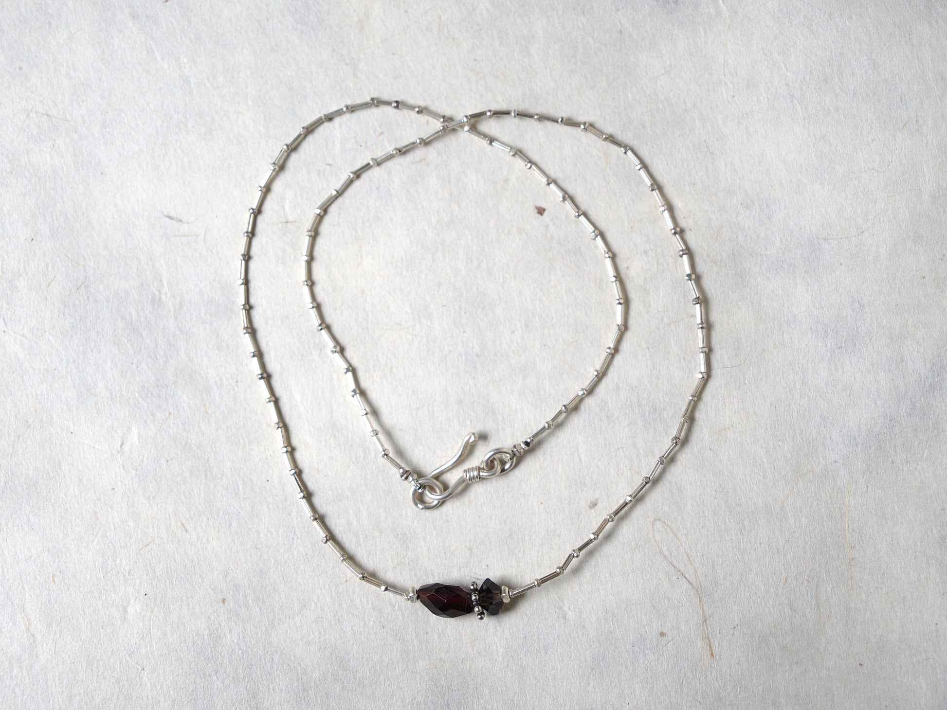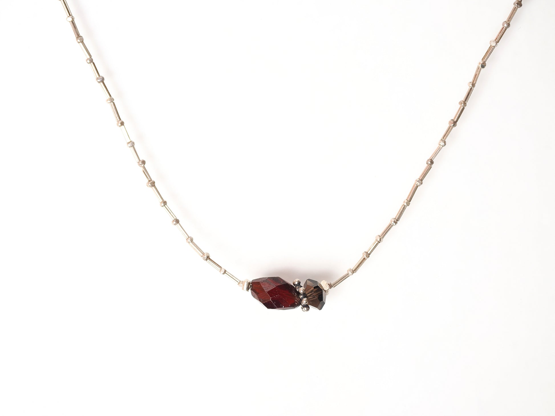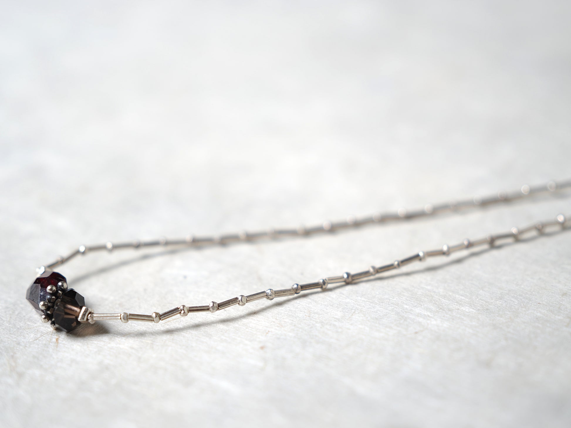 ガーネット、スモーキークォーツを繋いだシルバーチョーカー
