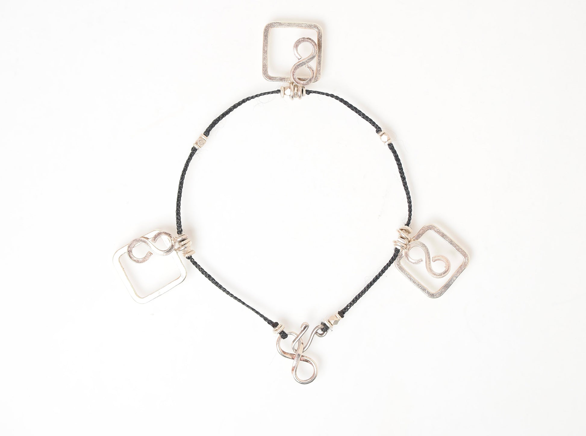 カレンシルバー・チャームを散りばめた編み紐アンクレット