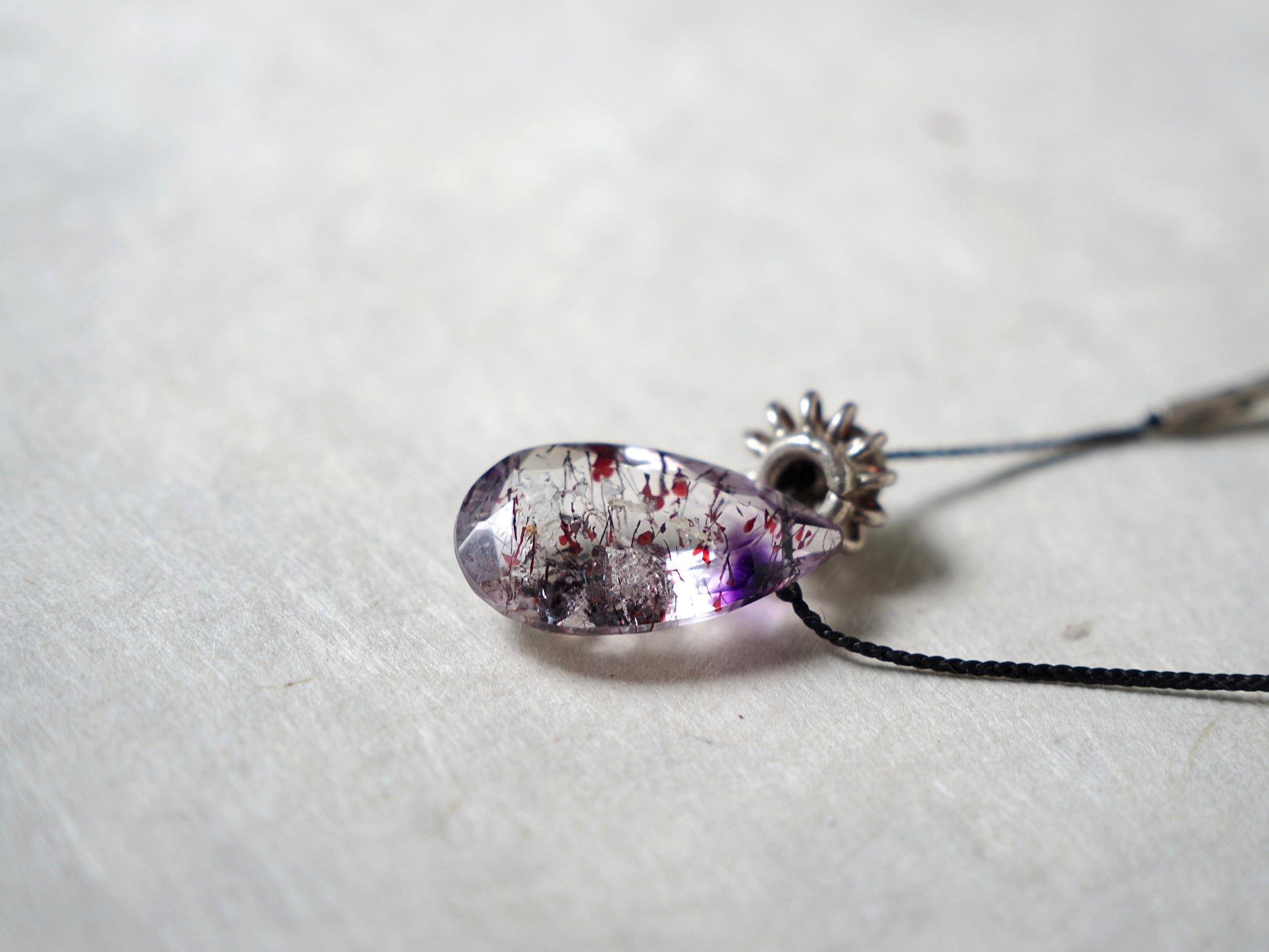 水晶の中に複数の鉱物を含み、唯一無二の複雑なインクルージョンを魅せるスーパーセブン