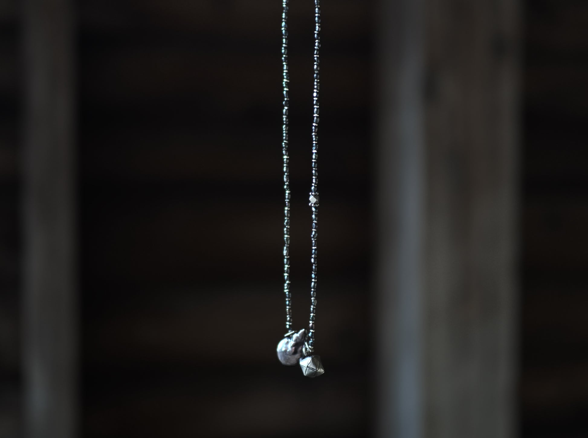 ブラックパールとカレンシルバーを繋いだロングペンダント