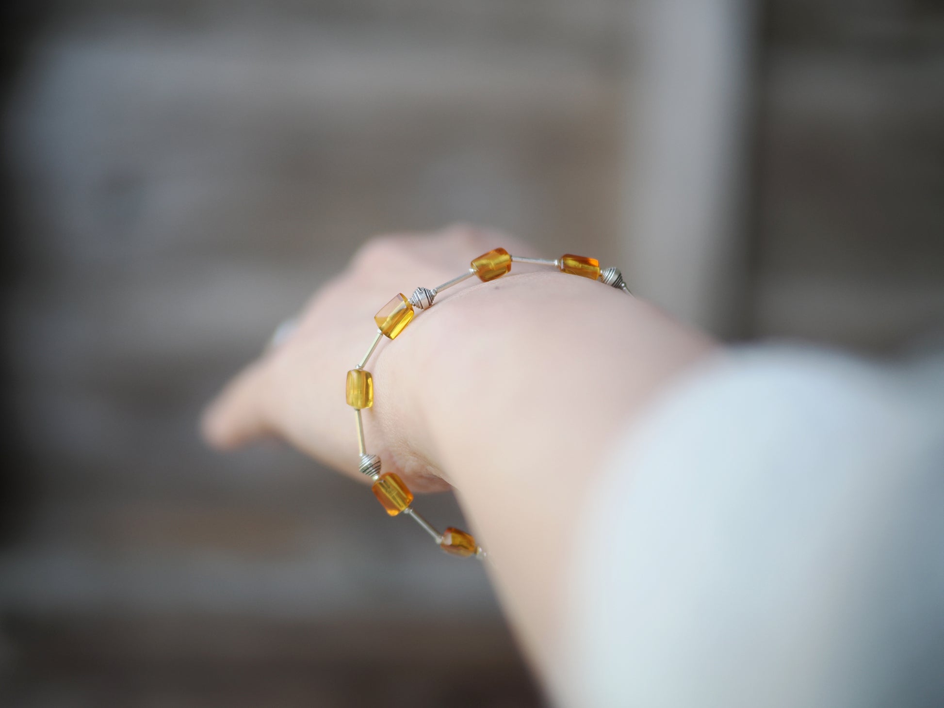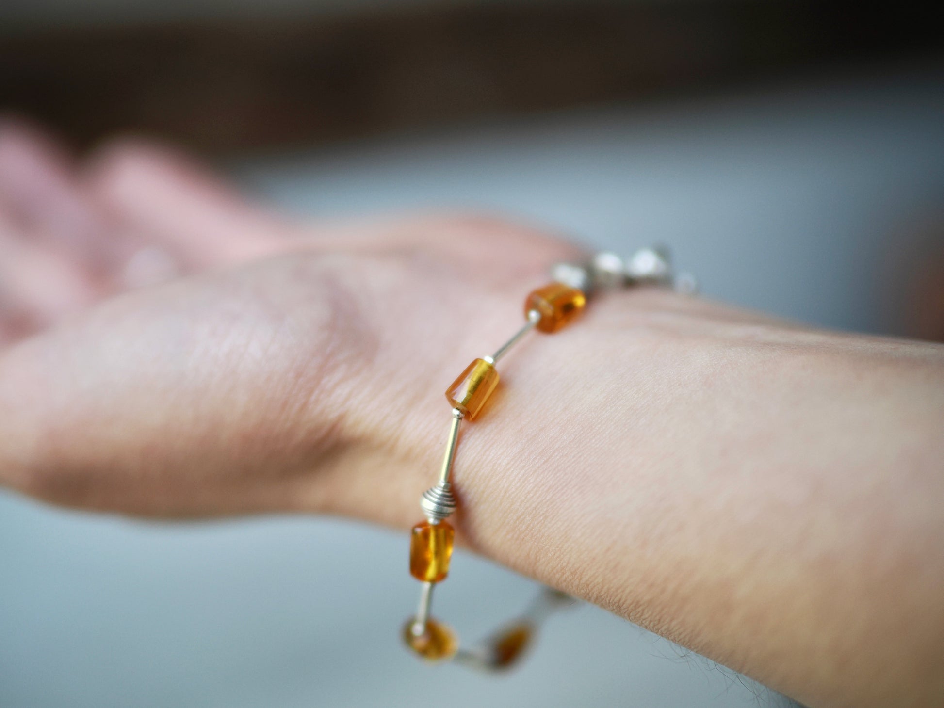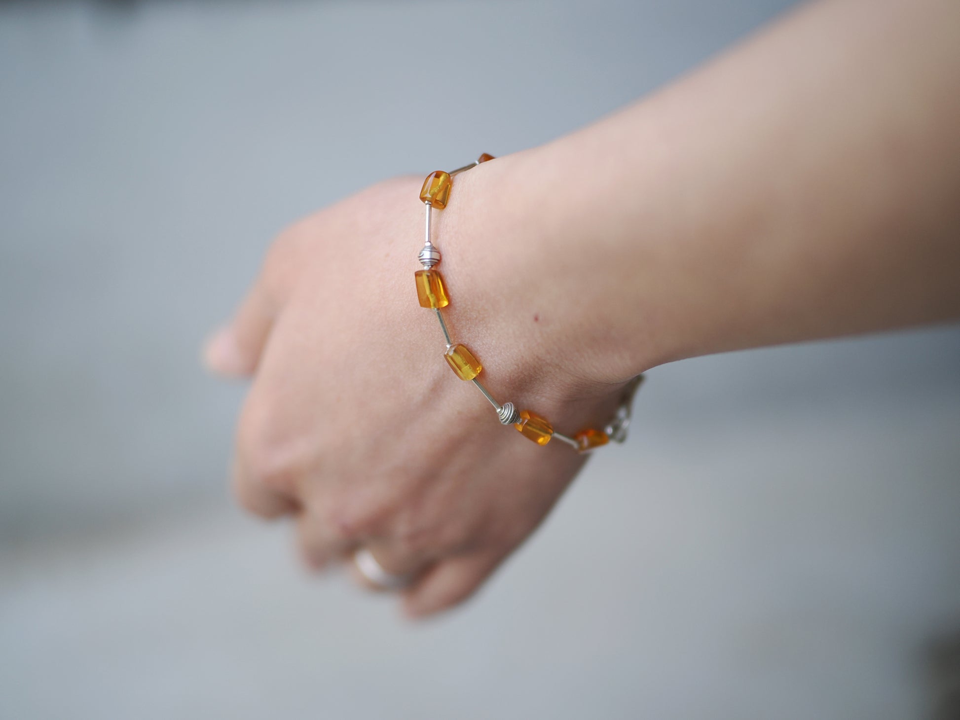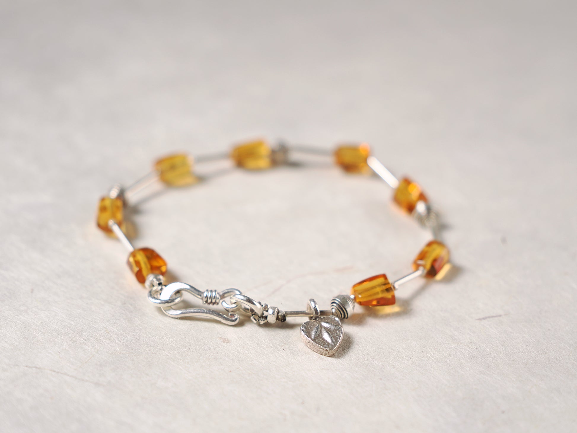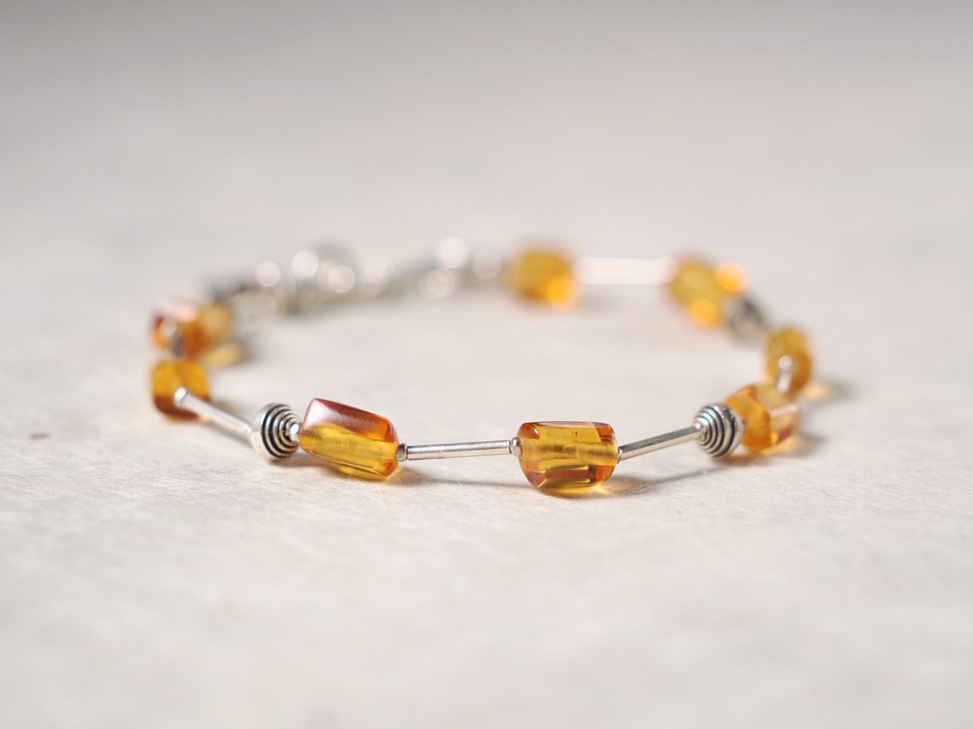 バーマイトと呼ばれるミャンマー産の琥珀を散りばめたシルバーブレスレット