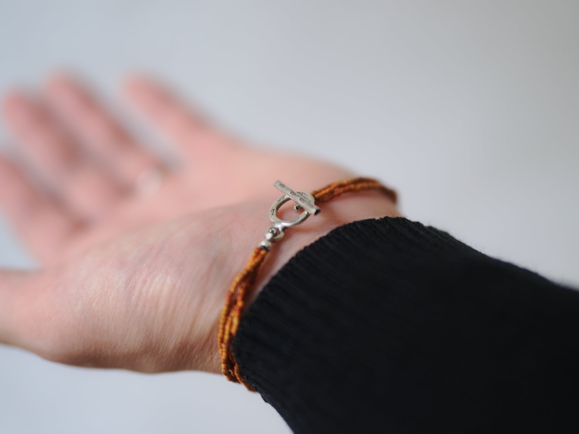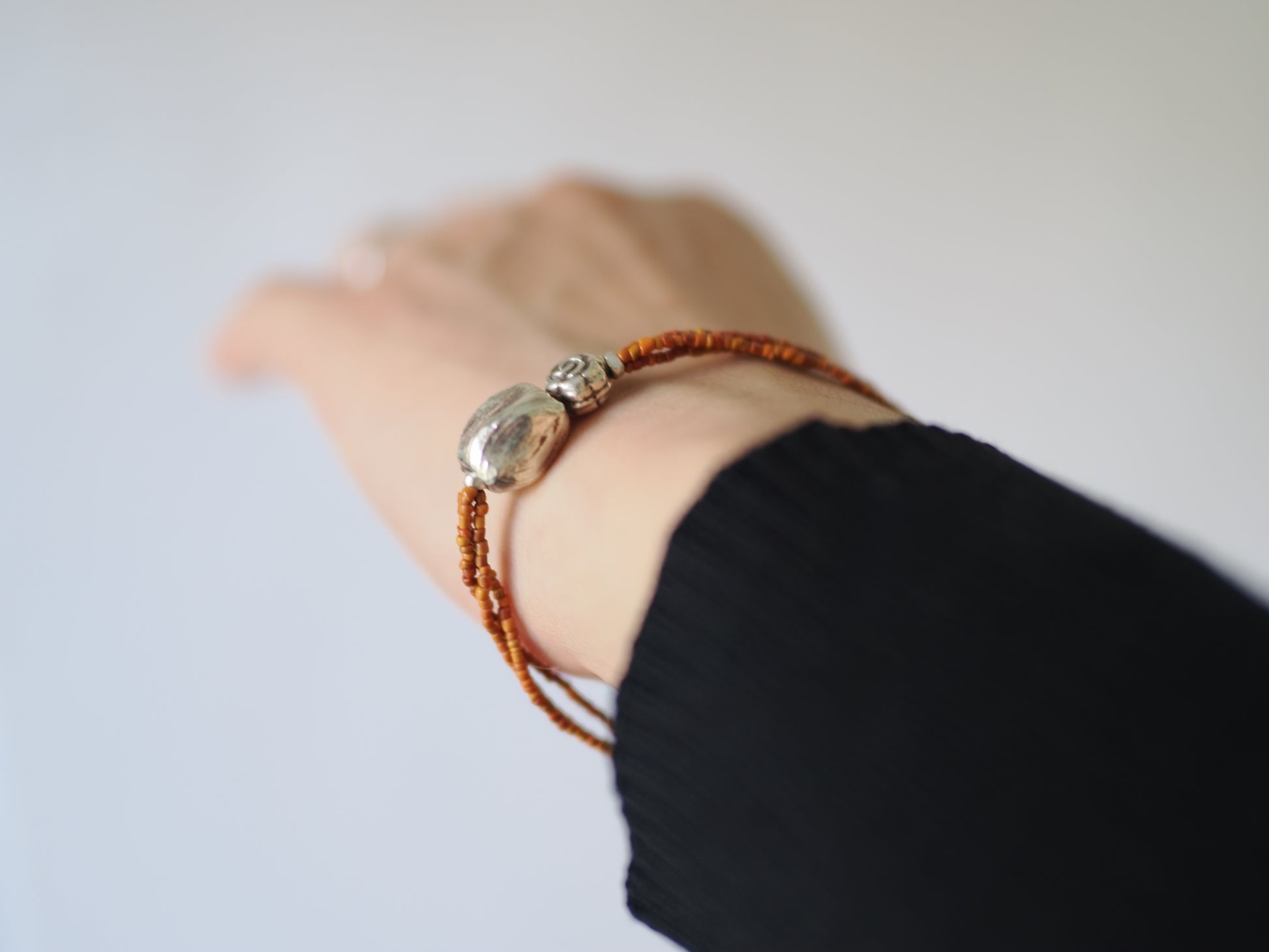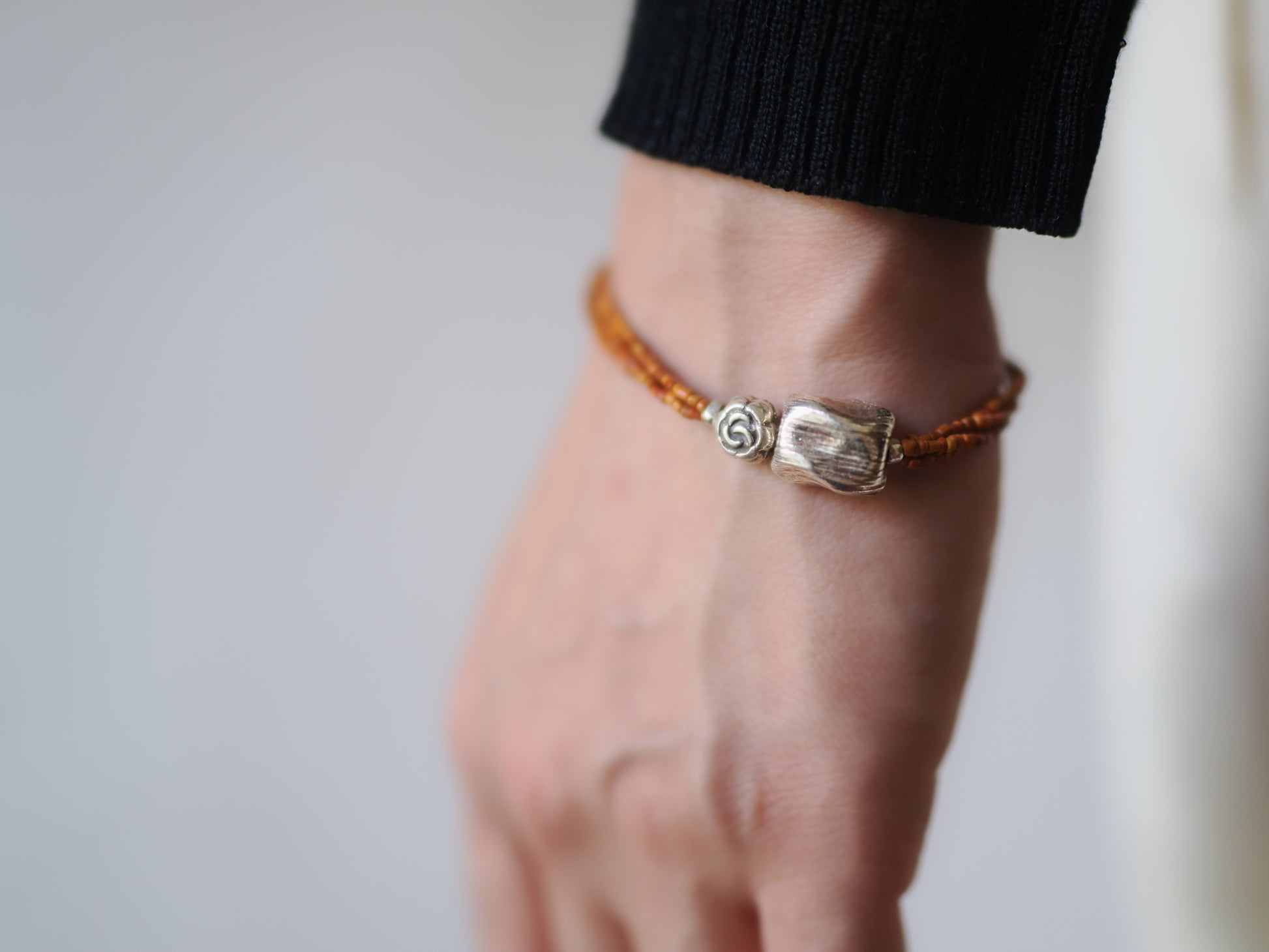 アクセントにカレンシルバーを合わせ、装飾感のあるブレスレットに仕立てました。