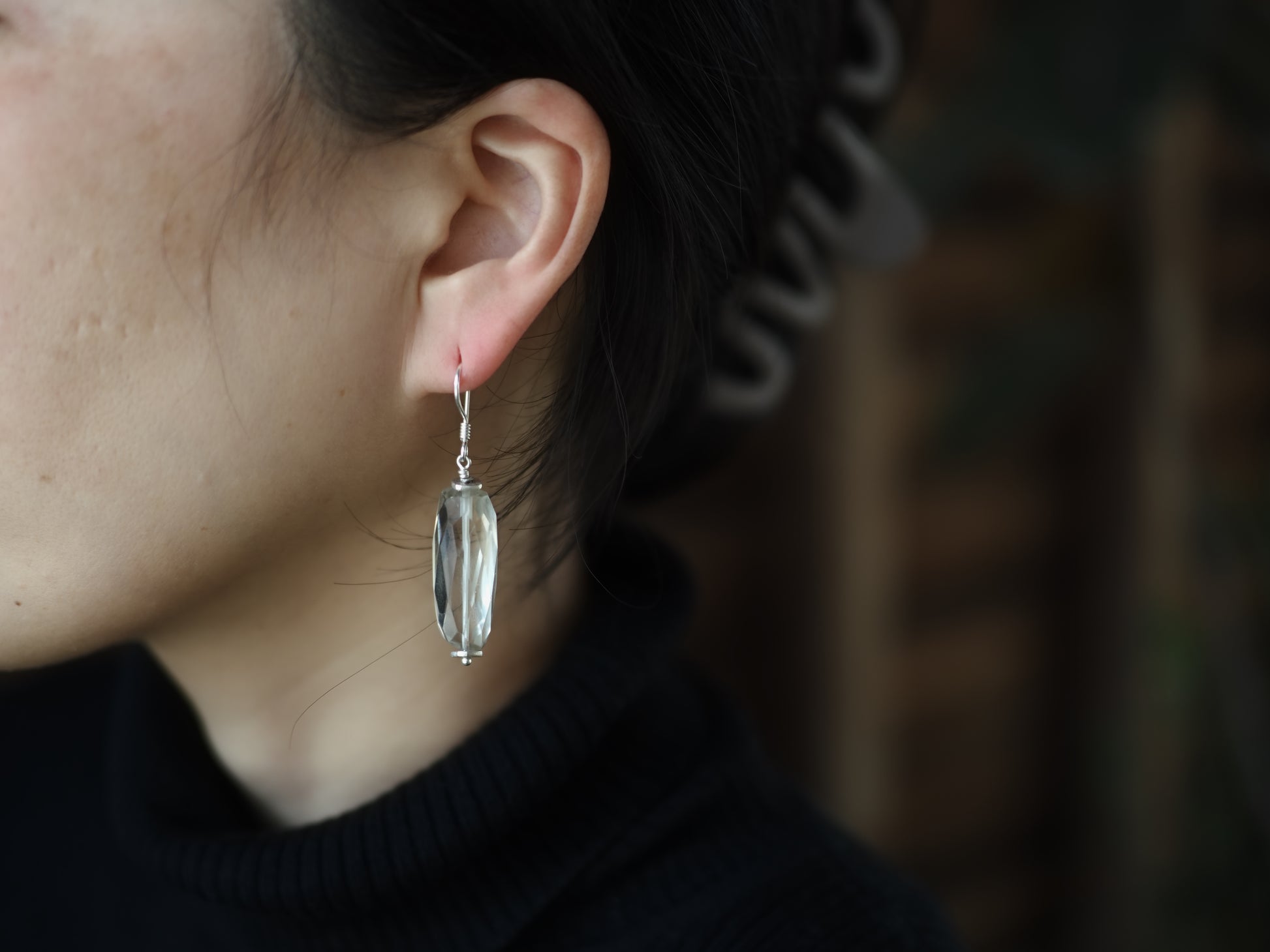 たっぷりの存在感を存分に感じられる様に、シンプルなフックピアスに仕立てました。
