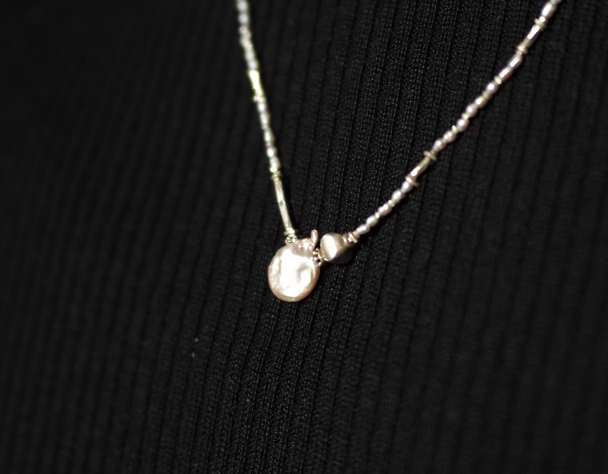 シルバーパールとシルバービーズを繋いだペンダント