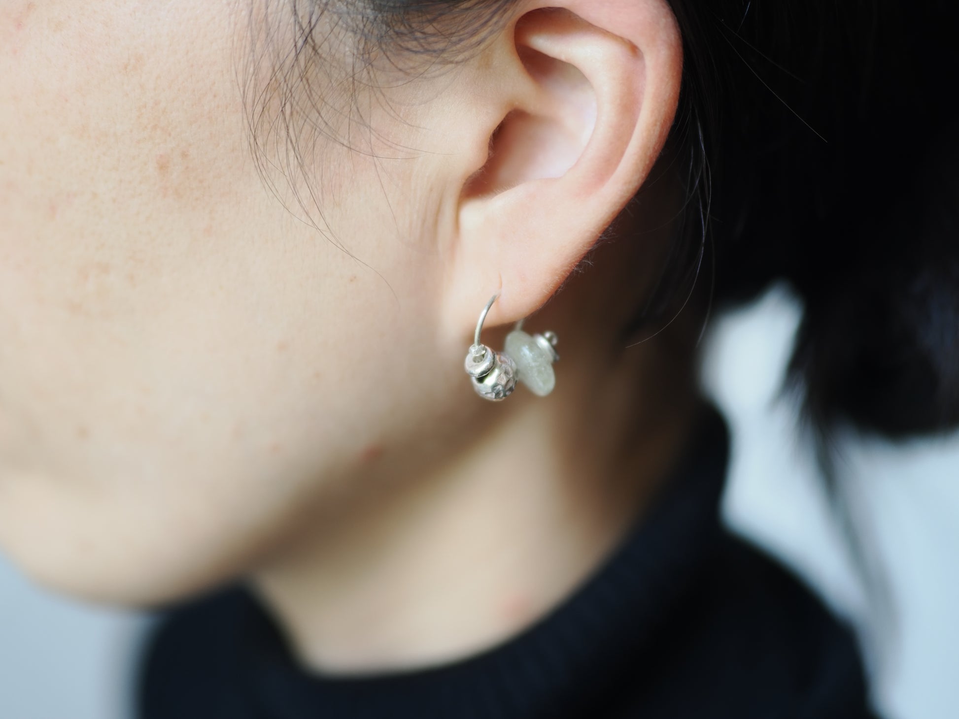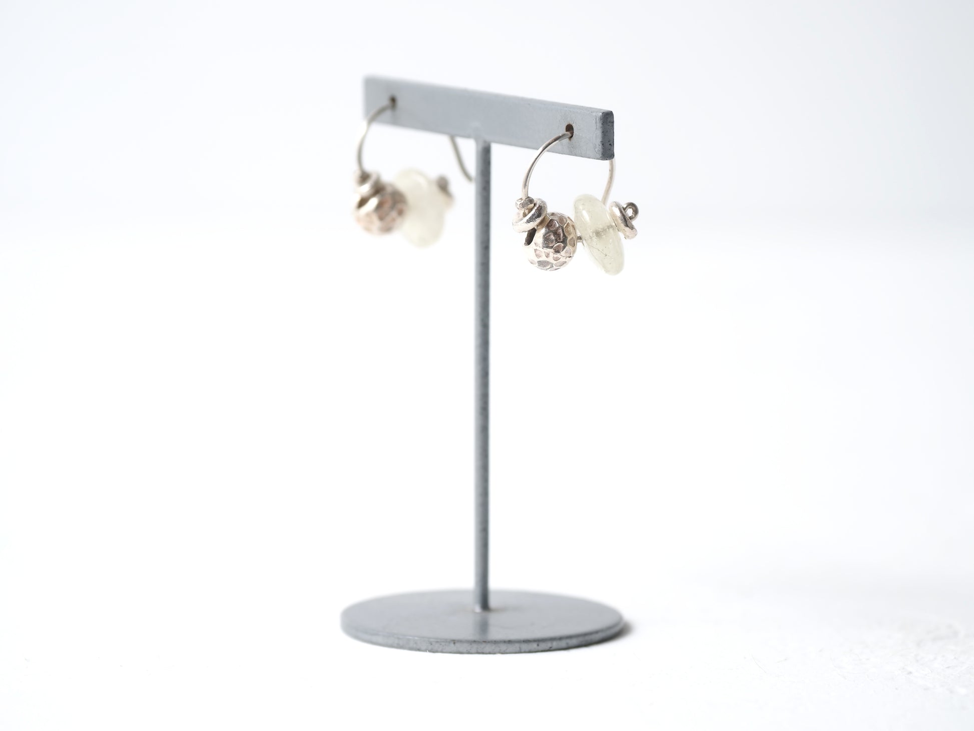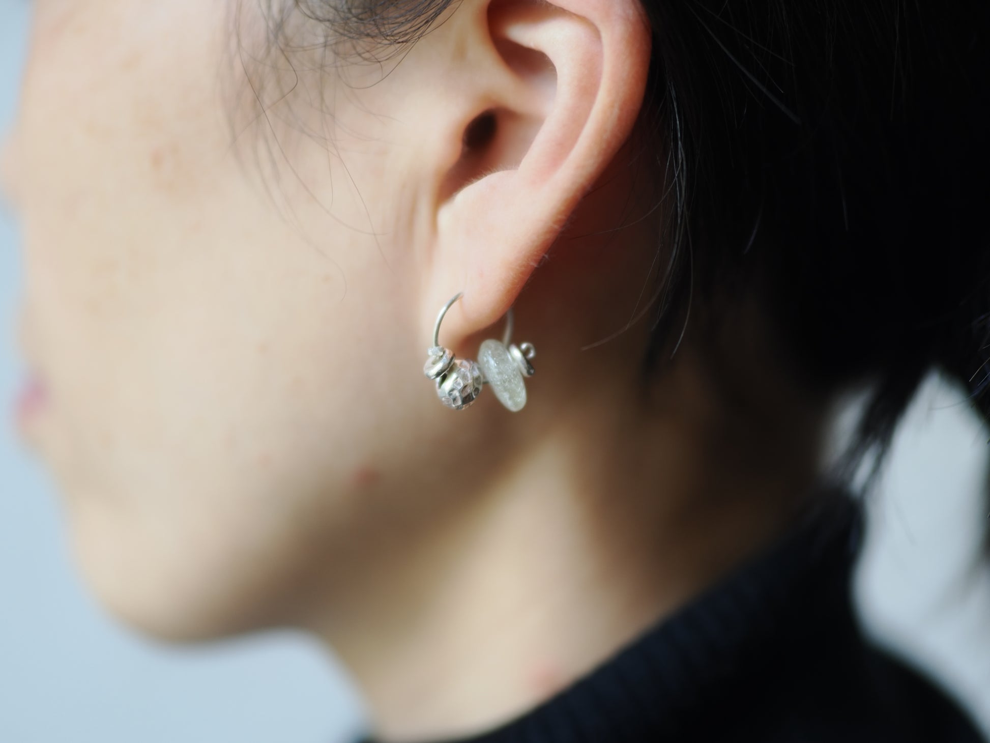 ぷっくりとした品の良いシルバービーズと共に、アクティブにお楽しみ頂けるフープピアスに仕立てました。