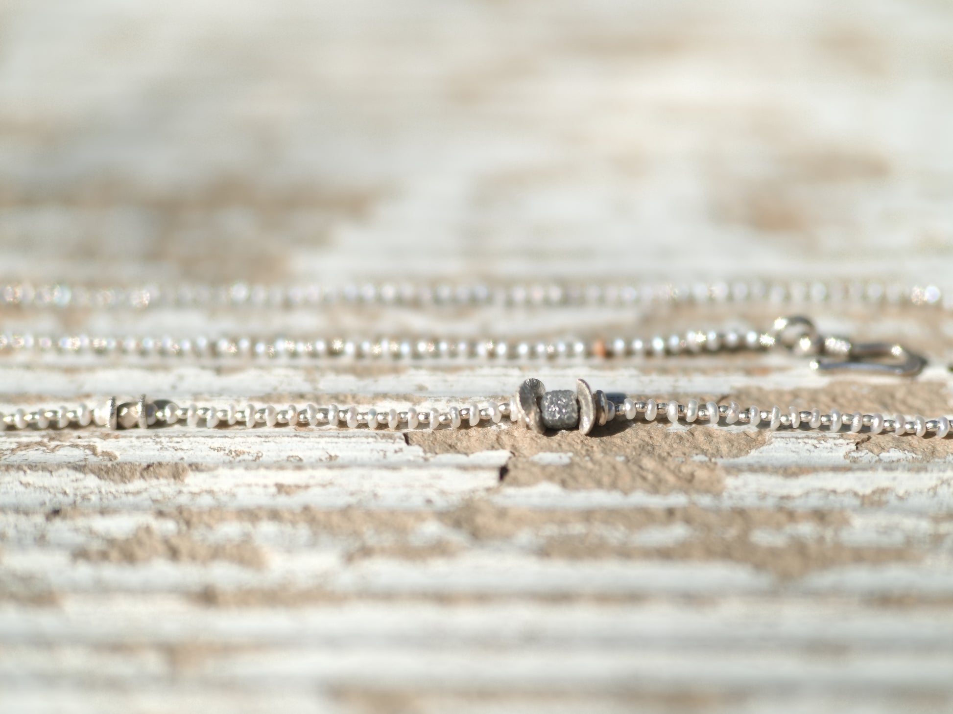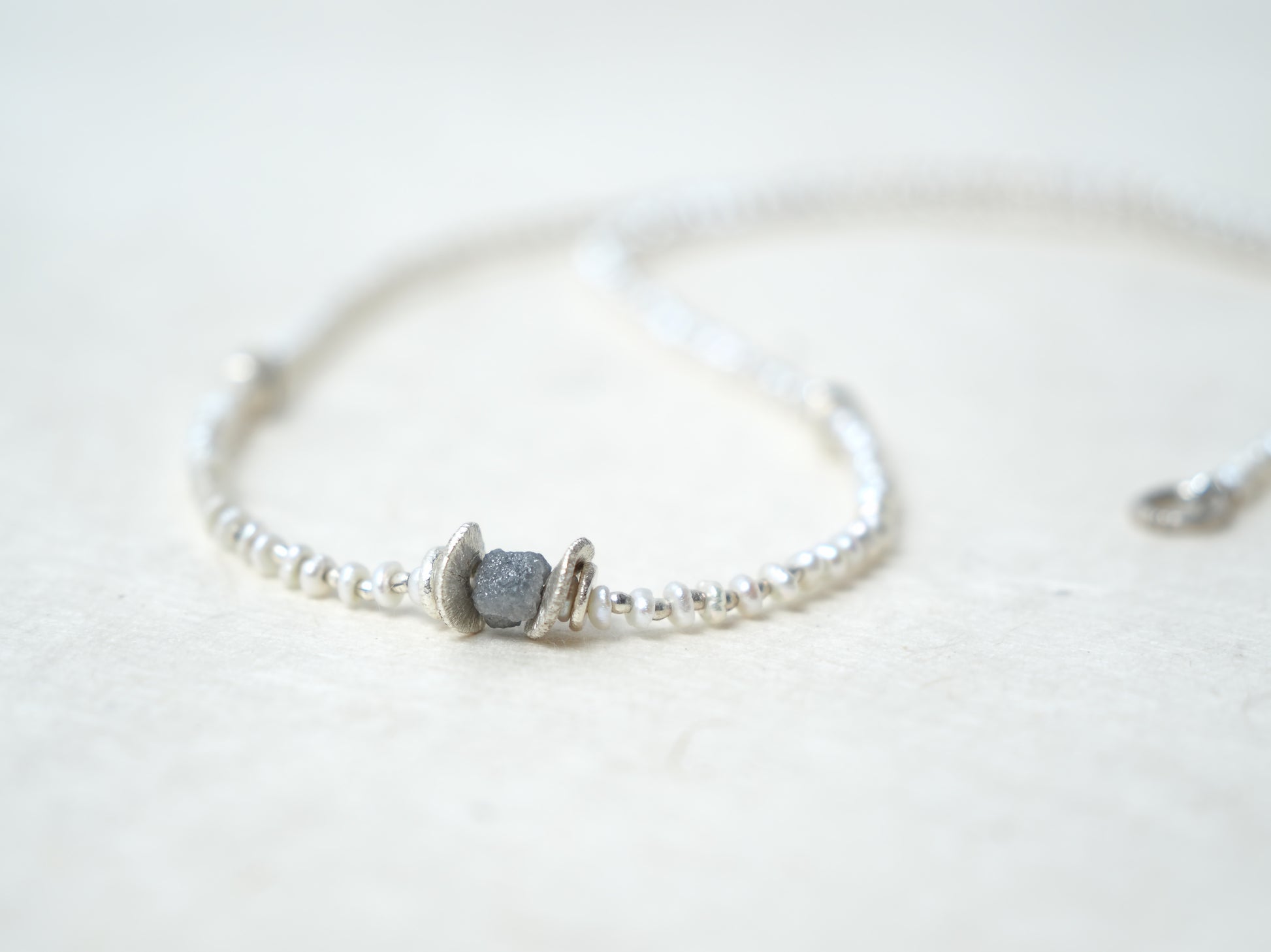 ラフカットのグレーダイヤモンドをトップに据えたビーズライン・ネックレス