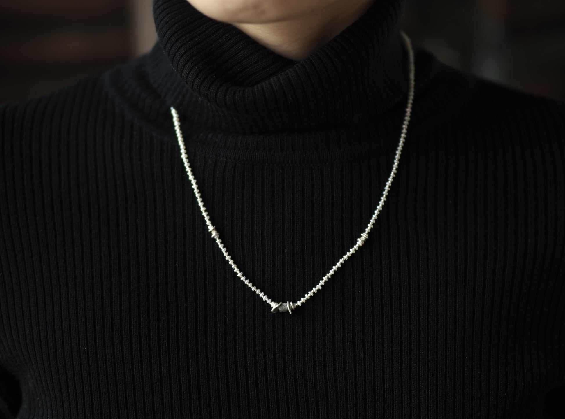 装いに洗練と余裕を添える、静謐な輝きを纏うネックレスです。
