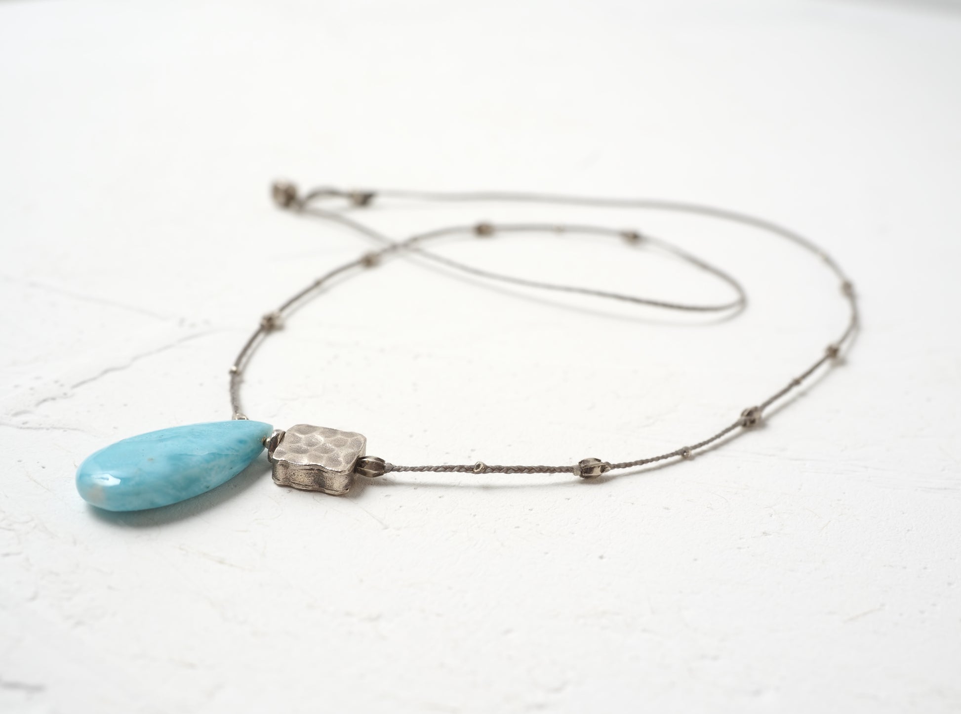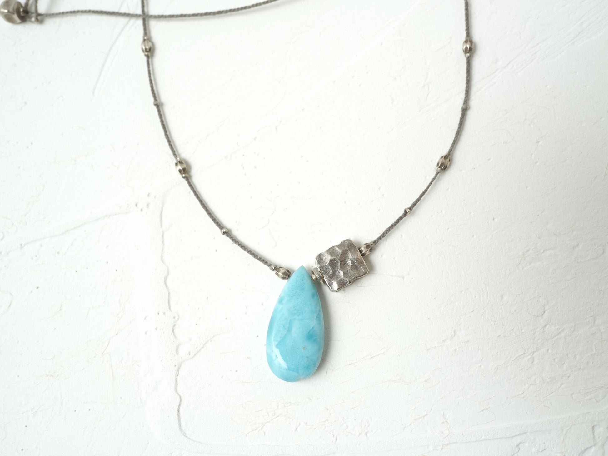 雫型の美しいラリマーに槌目模様の四角シルバーを合わせたトップ、、