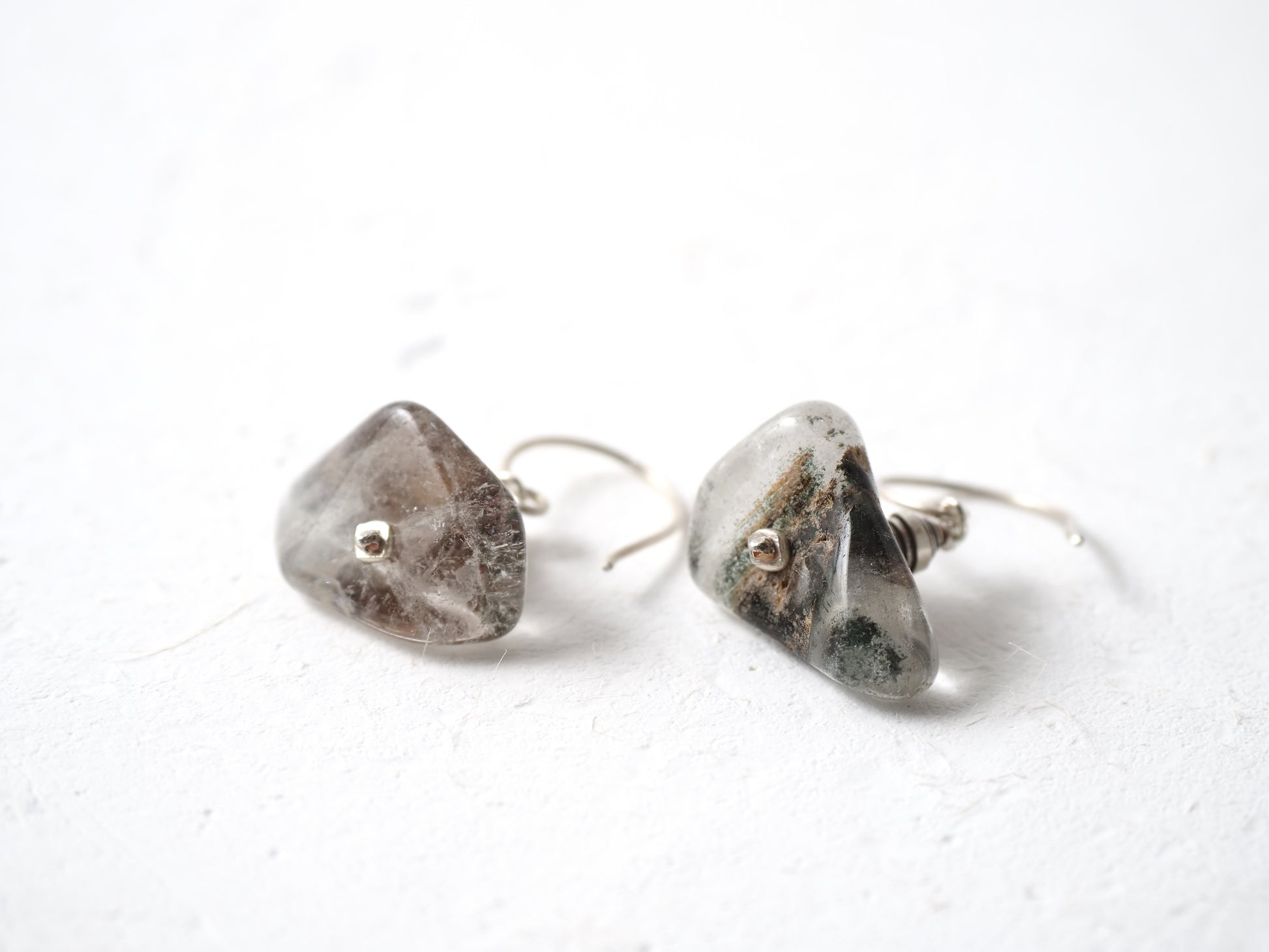 不揃いのラフ形状と内包物を含むナチュラルな魅力を感じられるモスクォーツ