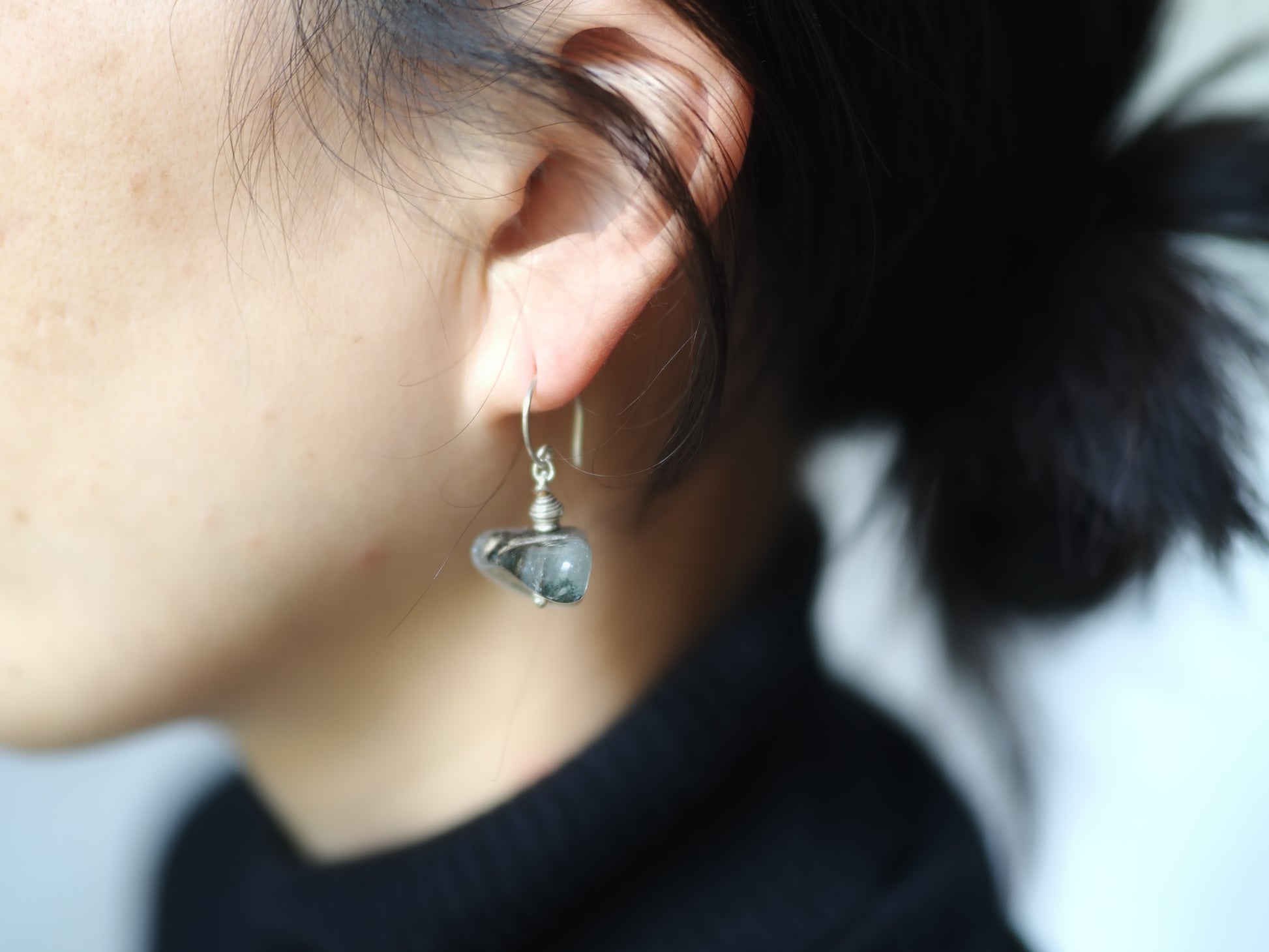 シルバービーズとフープフックを合わせ、存在感のあるピアスに仕立てました。