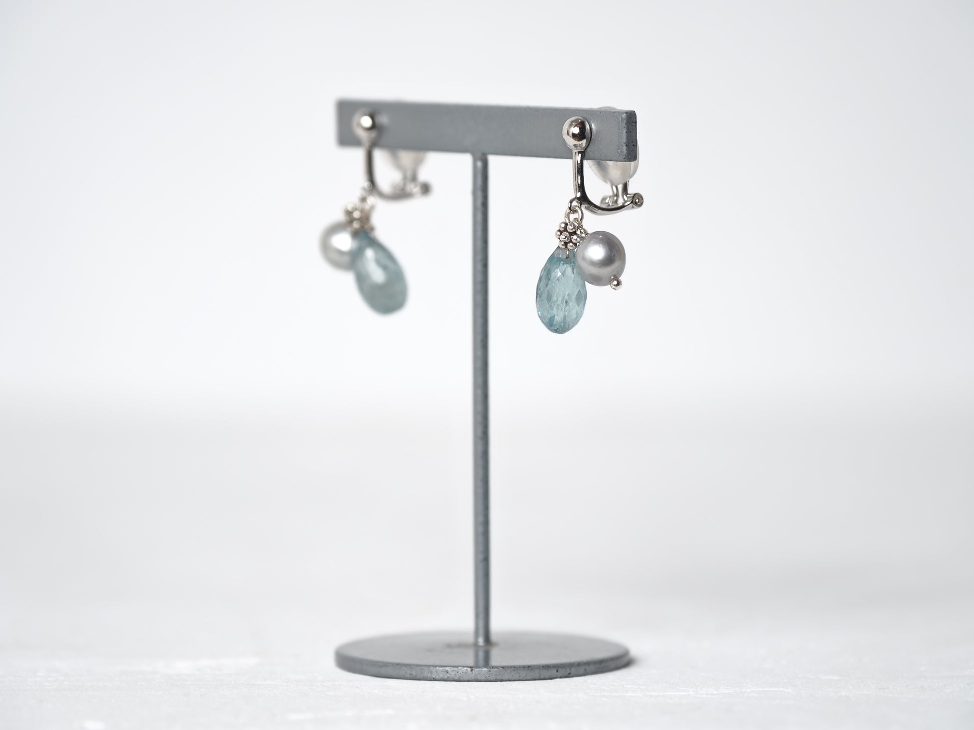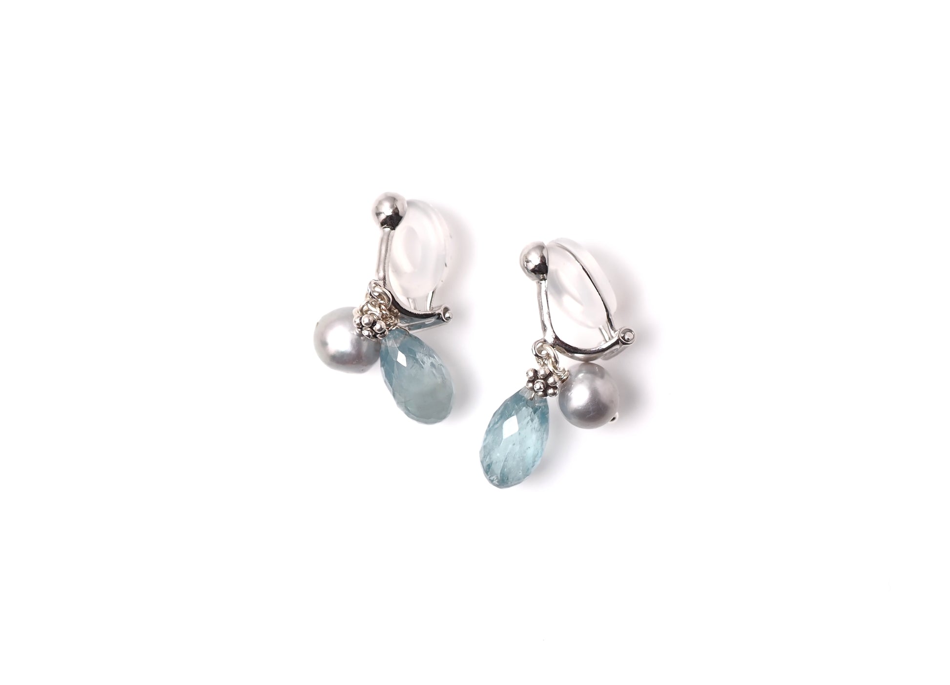 -Sky kyanite・Silver pearl- clips