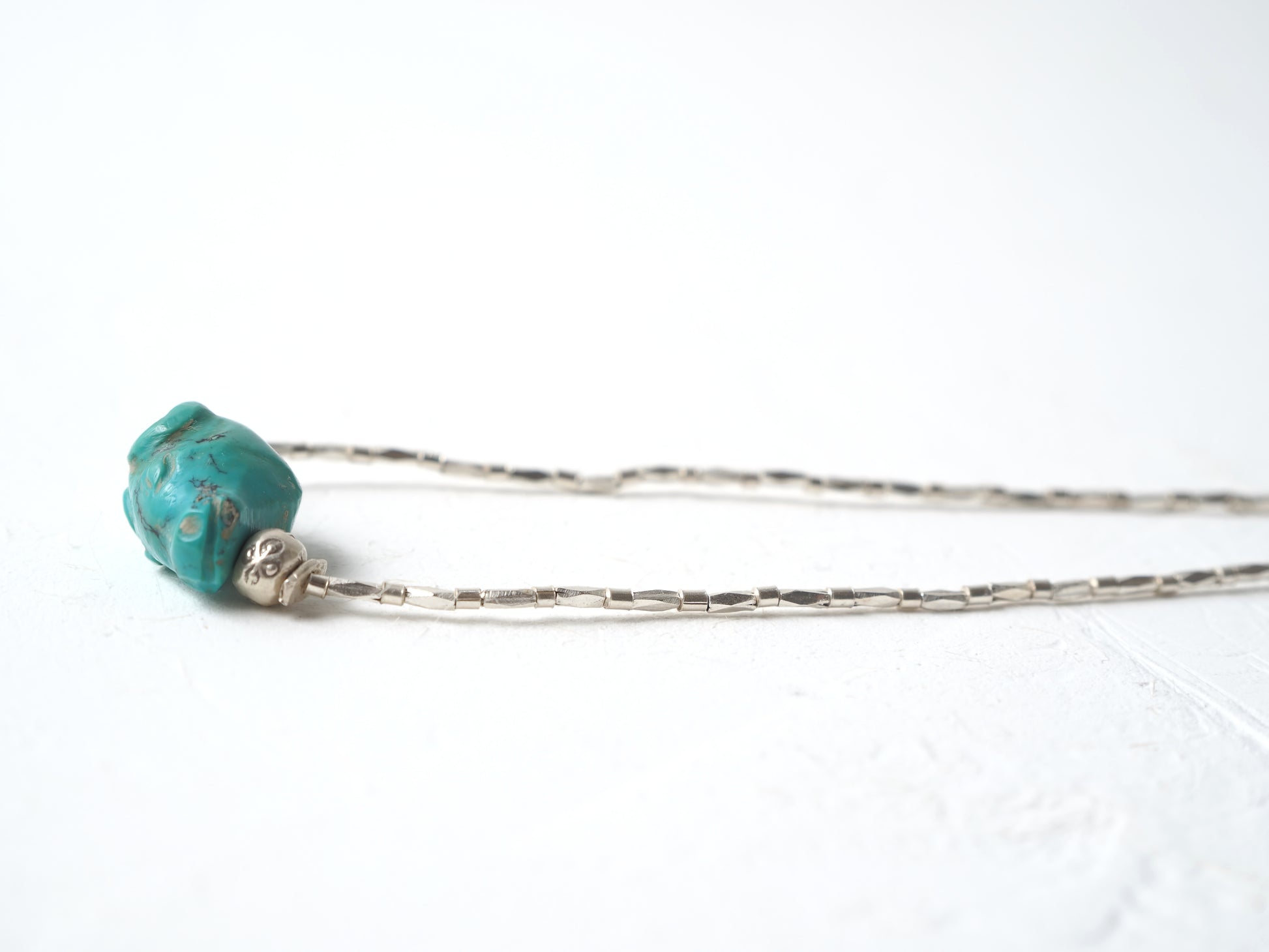 チベットの古いカービングターコイズを使用したシルバー・ショートネックレス