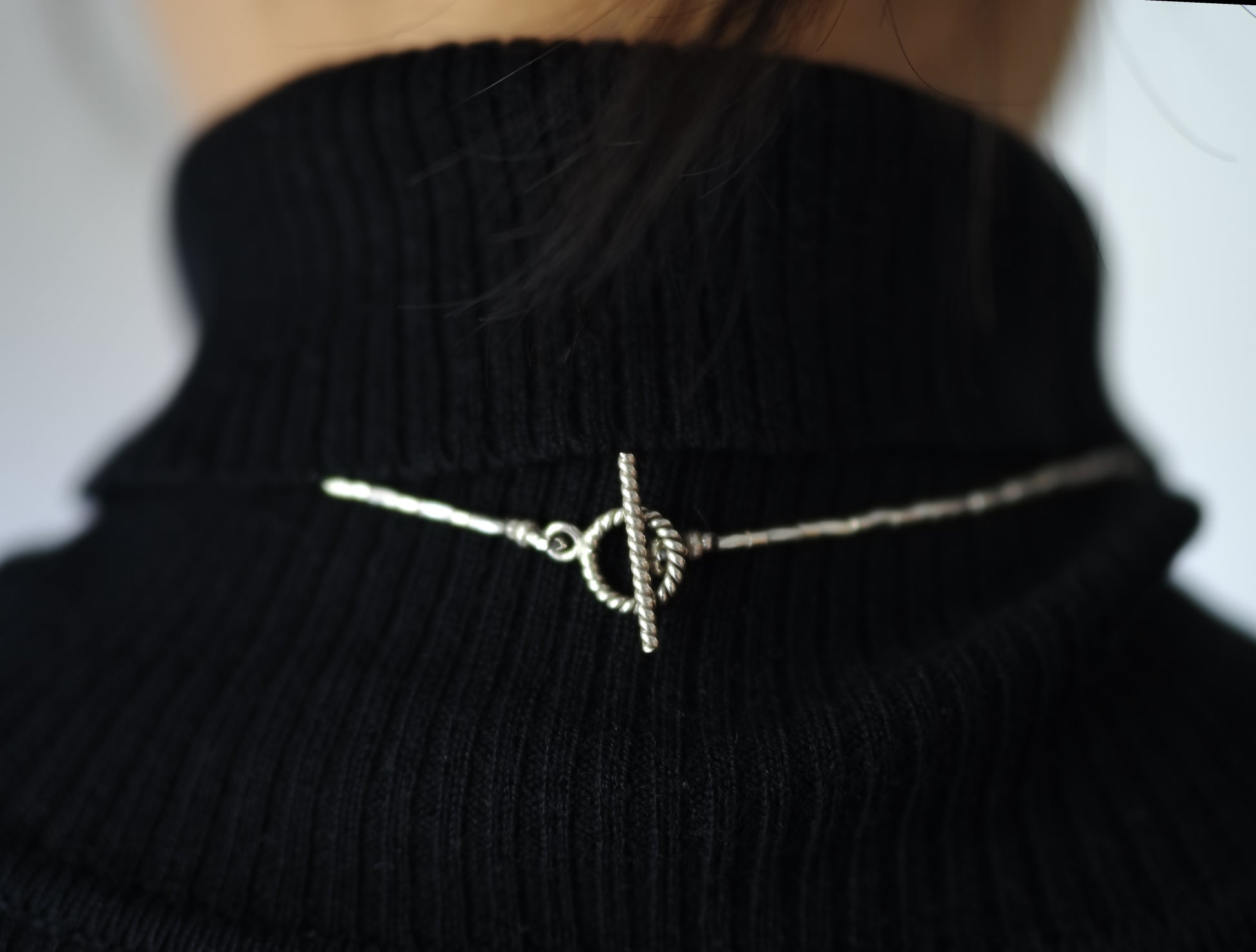 2種類のシルバービーズを組み合わせ、スタイリッシュなショートネックレスに仕立てました。